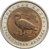10 рублей 1992 ЛМД "Красная книга - краснозобая казарка"