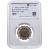 Купить 50 рублей 1994 ЛМД "Песчаный Слепыш", в слабе Монетник.ру MS64