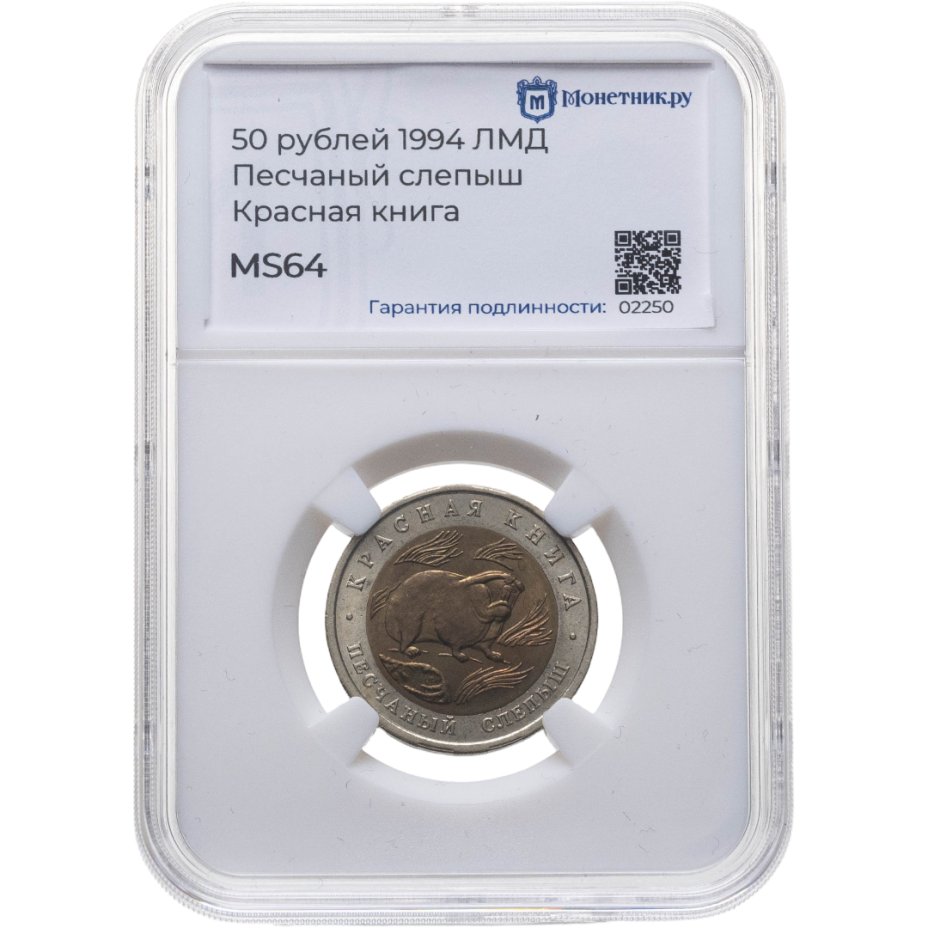купить 50 рублей 1994 ЛМД "Песчаный Слепыш", в слабе Монетник.ру MS64