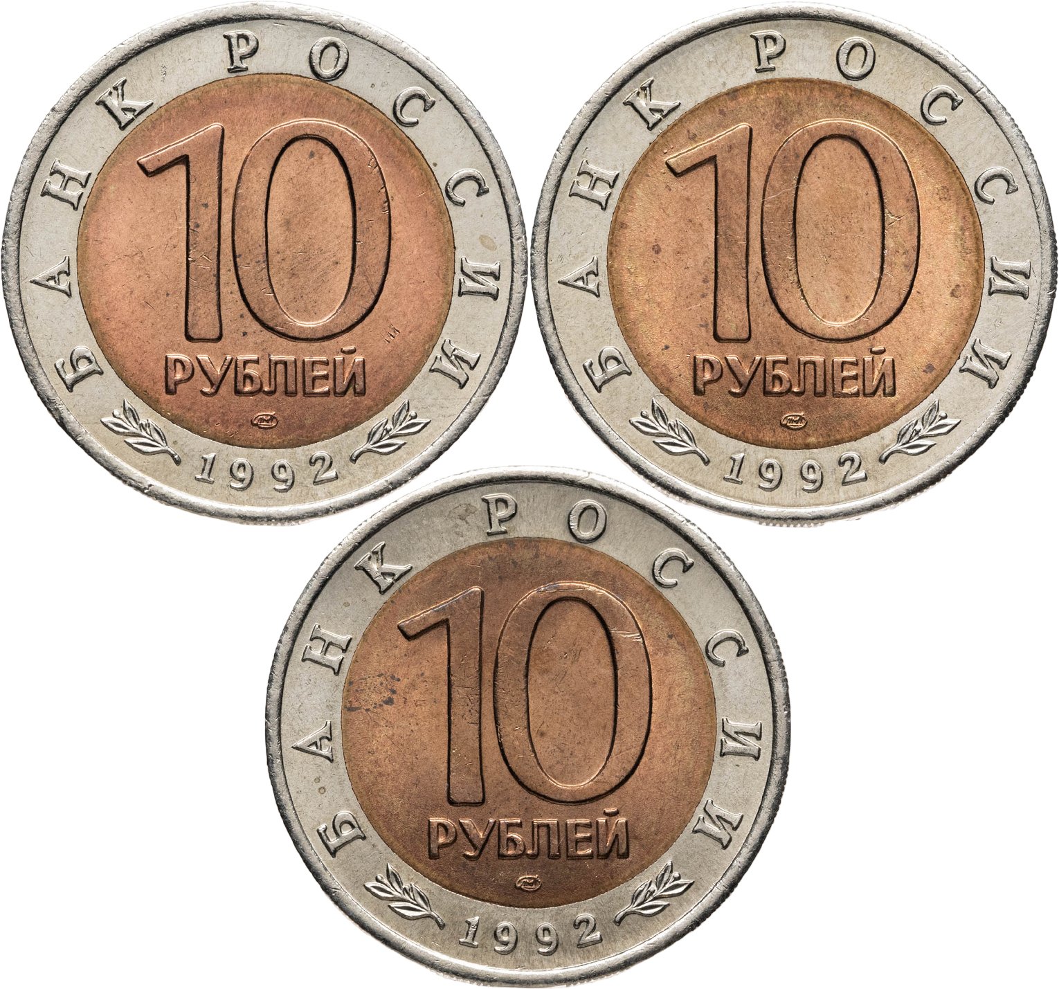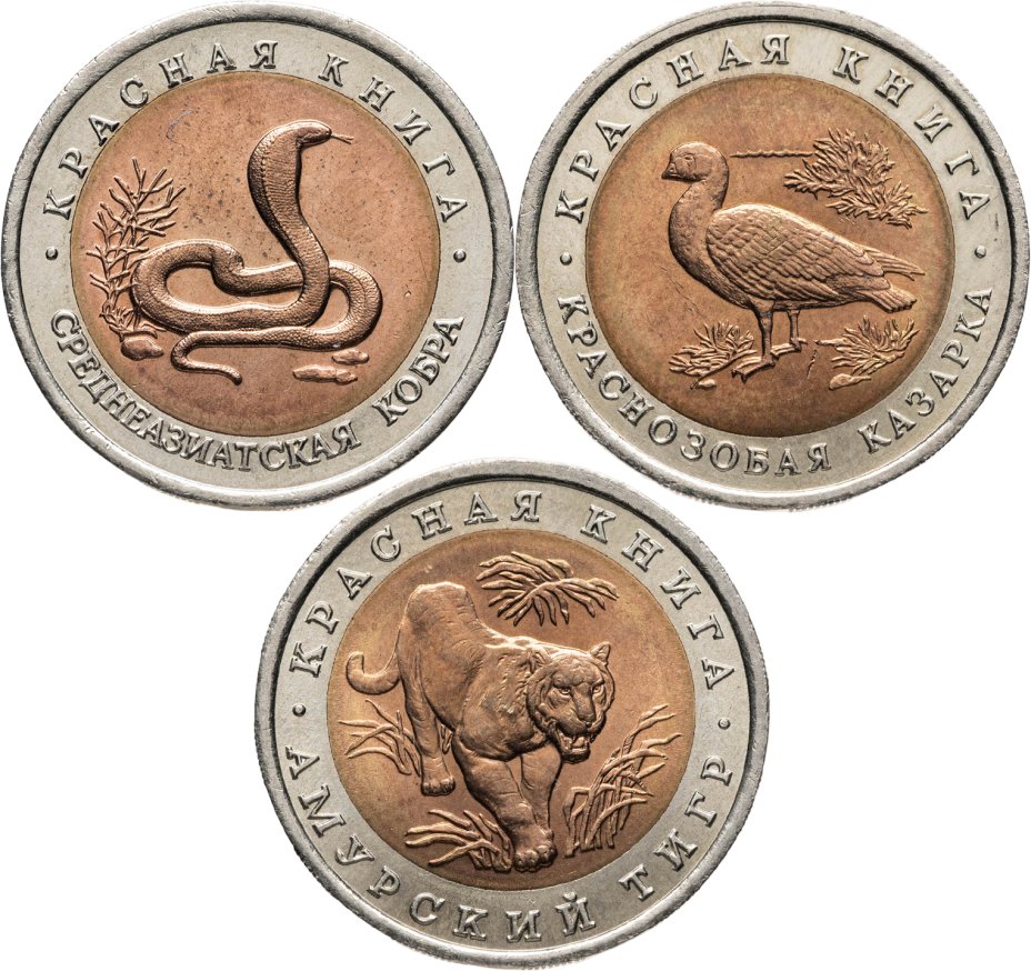 Набор из 3 - х монет 10 рублей 1992 "Красная книга - тигр, кобра, казарка"