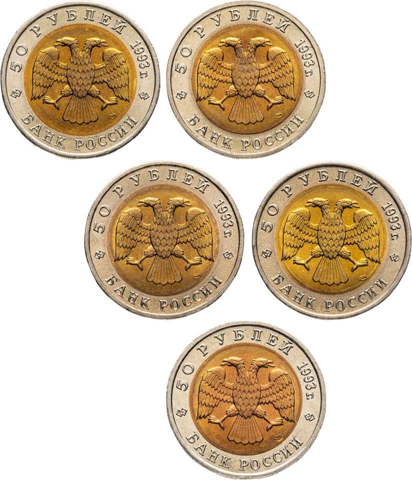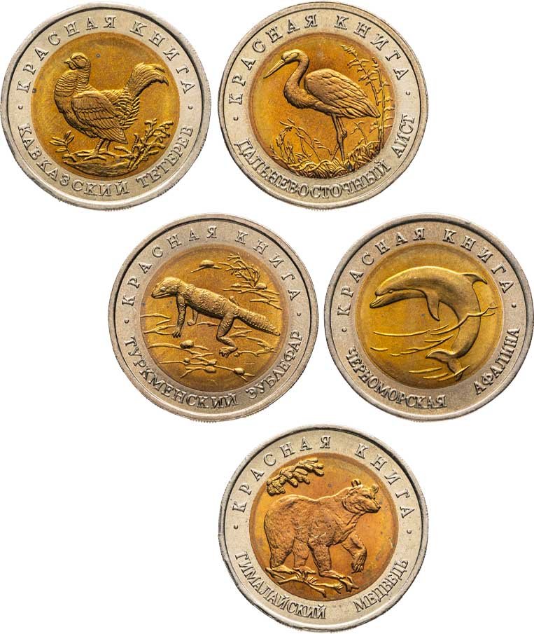 Набор из 5 монет 50 рублей 1993 Красная Книга