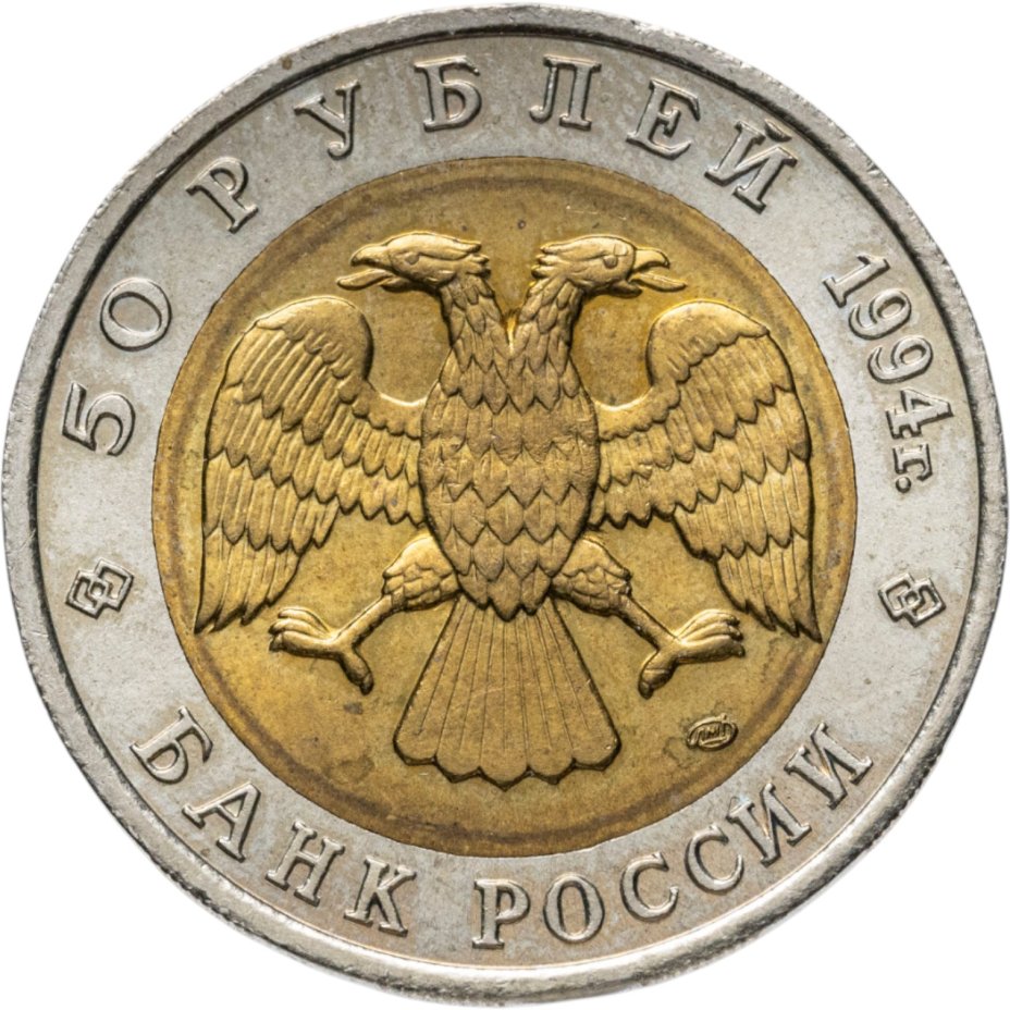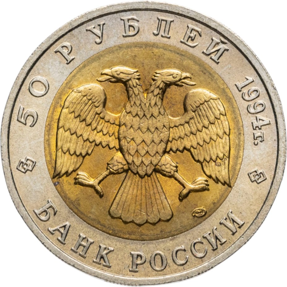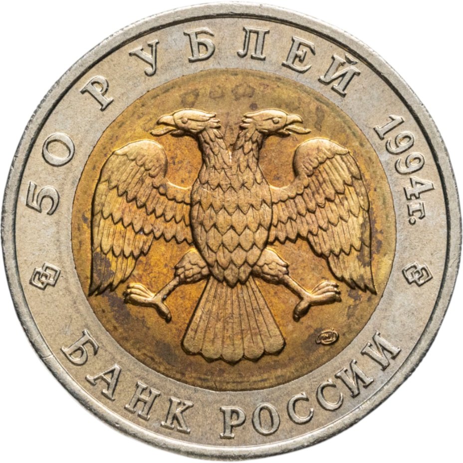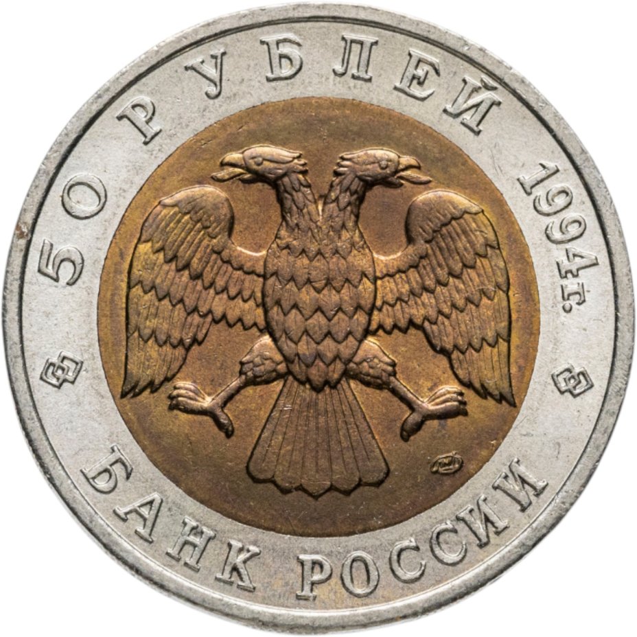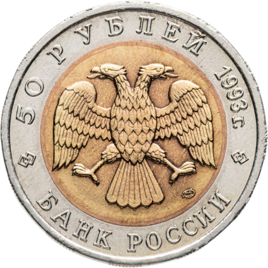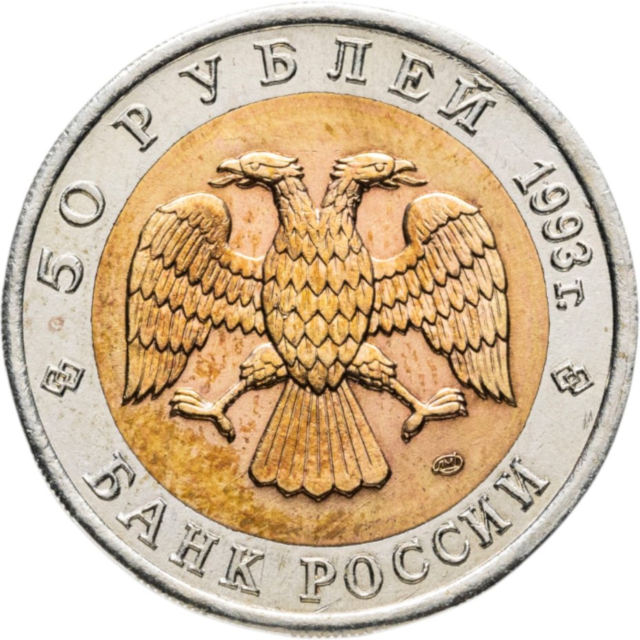 - В 1993 году номинал биметаллических монет увеличивается в пять раз и становится равен 50-и рублям. Кроме того, впервые появляются серебряные монеты номиналом 1 рубль. Они выпускаются в PROOF-качестве. Чеканятся те же животные, которые чеканились на биметалле. Начальный тираж — 50000 штук.