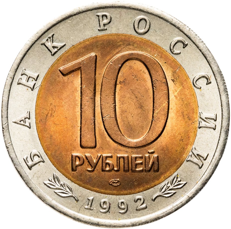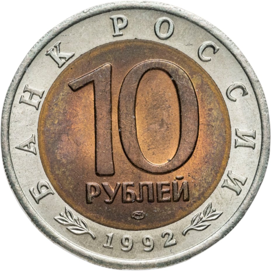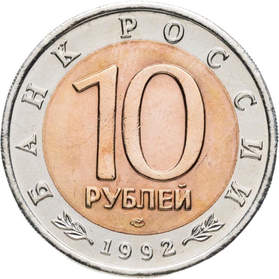 - В 1992 году также чеканится биметалл. Номинал увеличивается вдвое: теперь монеты «Красная книга» имеют достоинство 10 рублей. На реверсах появляются амурский тигр, краснозобая казарка, среднеазиатская кобра.