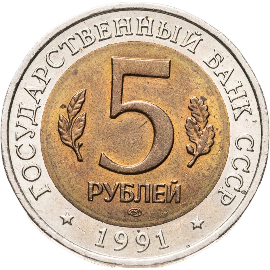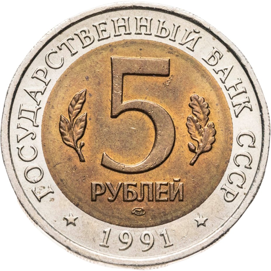 - В 1991 году выпущены две биметаллические монеты номиналом 5 рублей, с изображениями винторогого козла и рыбного филина. Латунный диск придаёт монетам красноватый оттенок. Вокруг диска — кольцо из нейзильбера. Тираж всех биметаллических монет составляет 300000 штук.