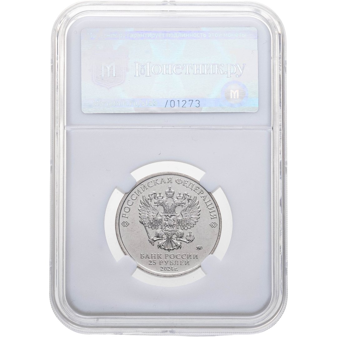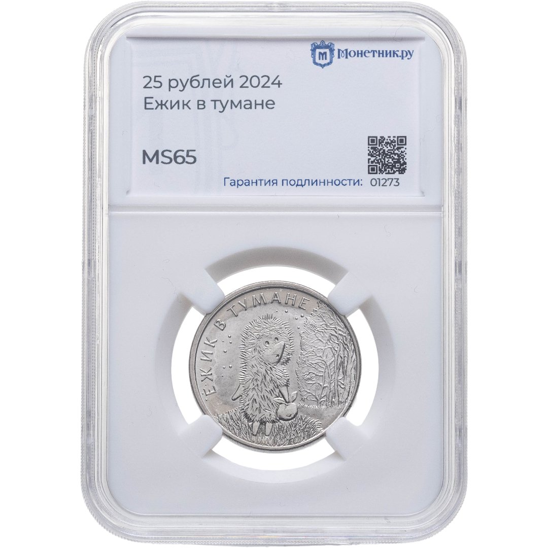 25 рублей 2024 ММД Российская (советская) мультипликация - мультфильм "Ежик в тумане" в слабе Монетник.ру MS65, случайный номер слаба