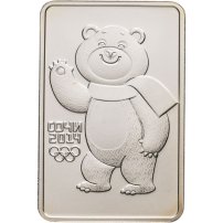 Рельефное изображение Белого Мишки - официального талисмана XXII Олимпийских зимних игр 2014 года в г. Сочи, слева от него в две строки - надпись: "СОЧИ" и дата: "2014", под ними - пять Олимпийских колец.