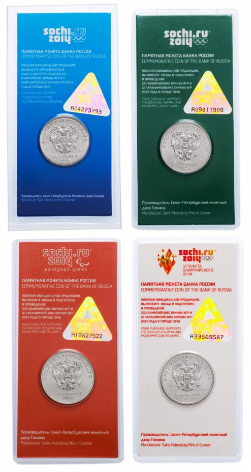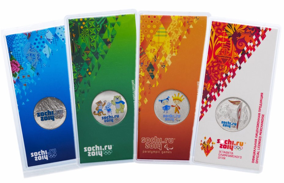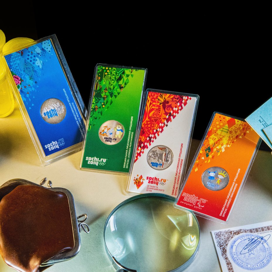 Сочинские монеты и боны продаются по отдельности и в наборах, упакованные в тематические альбомы.