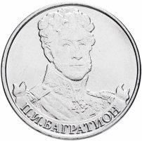 На монете, посвящённой Петру Ивановичу Багратиону, изображён его погрудный портрет работы Джорджа Доу, созданный для Военной галереи Зимнего дворца ориентировочно в 1823-1825 годах. Он исторически неточен, так как Багратион изображён на ней в мундире образца 1817 года, в то время как смертельную рану генерал получил в 1812. Также ходят споры, какая именно картина послужила основой для работы Джорджа Доу, так как искусствоведы отмечают определённое сходство изображения с тремя разными известными ныне портретами.