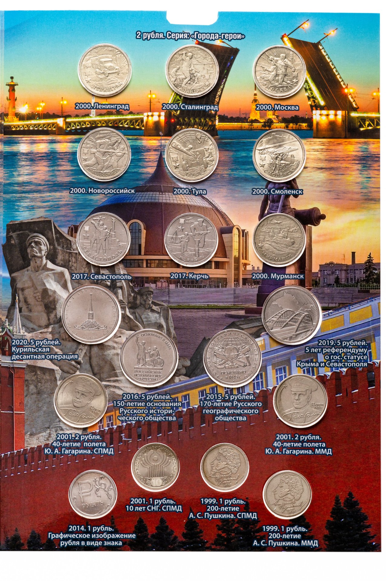 2. рубля: Гагарин ММД/СПМД, серия монет Города Герои 9шт