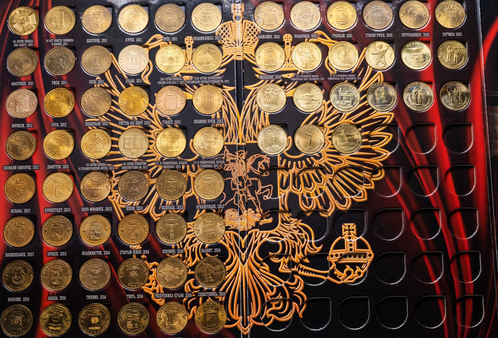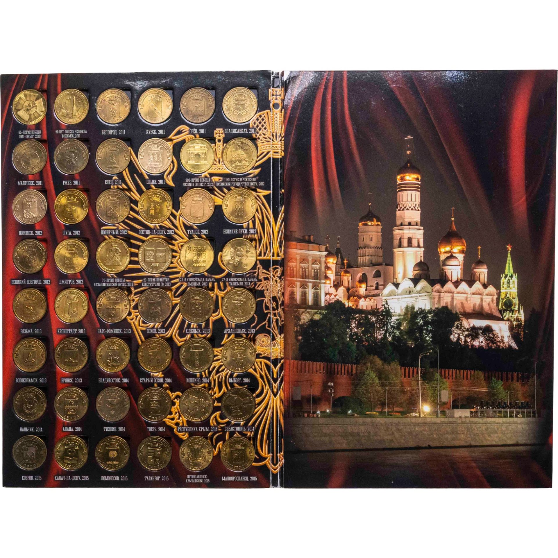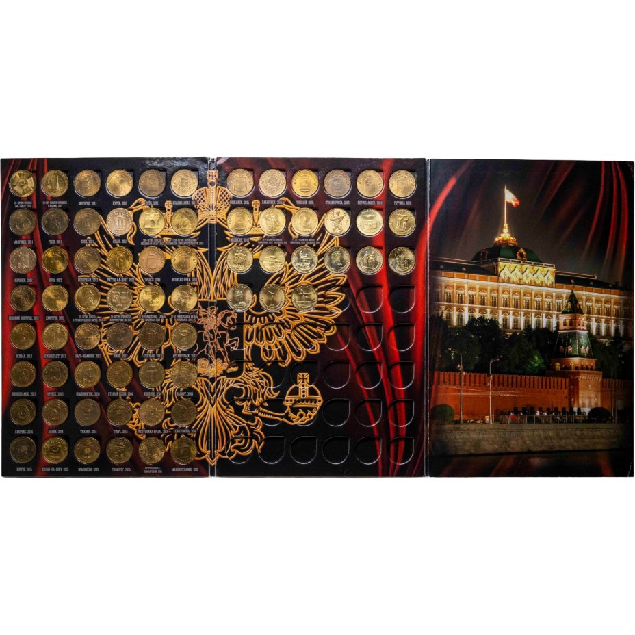 Набор в альбоме памятных 10 рублевых монет серии: "Города Воинской славы", "Универсиады", "Города Трудовой доблести" 2010-2024 (69 монет)