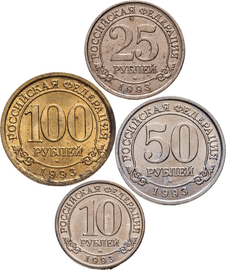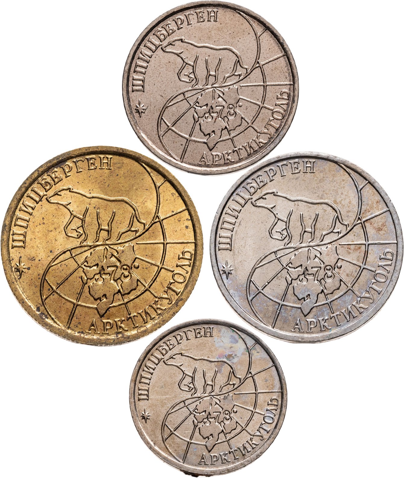 Комплект 4-х монет острова Шпицберген Арктикуголь 10, 25, 50 и 100 рублей 1993 ММД