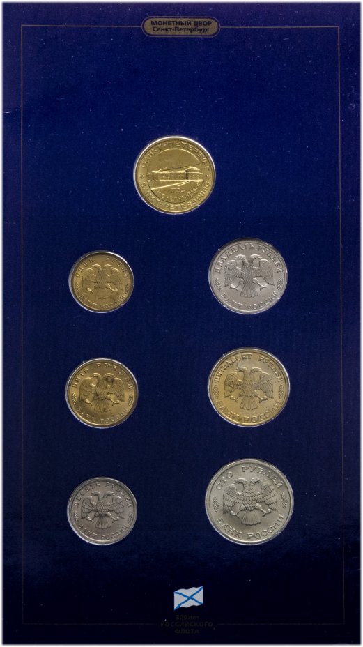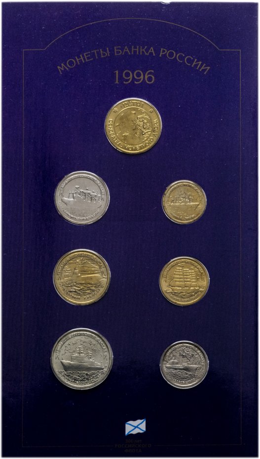 Набор "300 лет Российского флота" 1996 (6 монет + жетон в буклете)