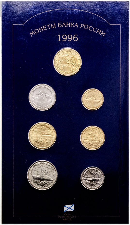 Набор "300 лет Российского флота" 1996 (6 монет + жетон в буклете)