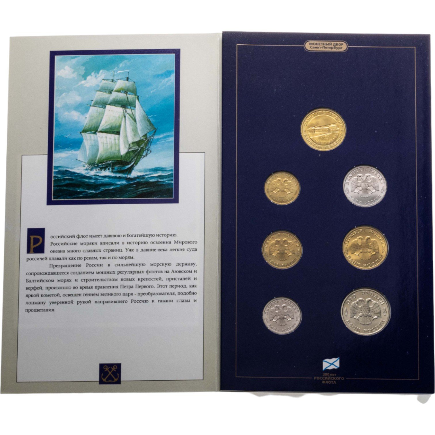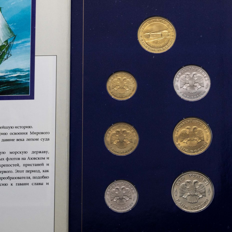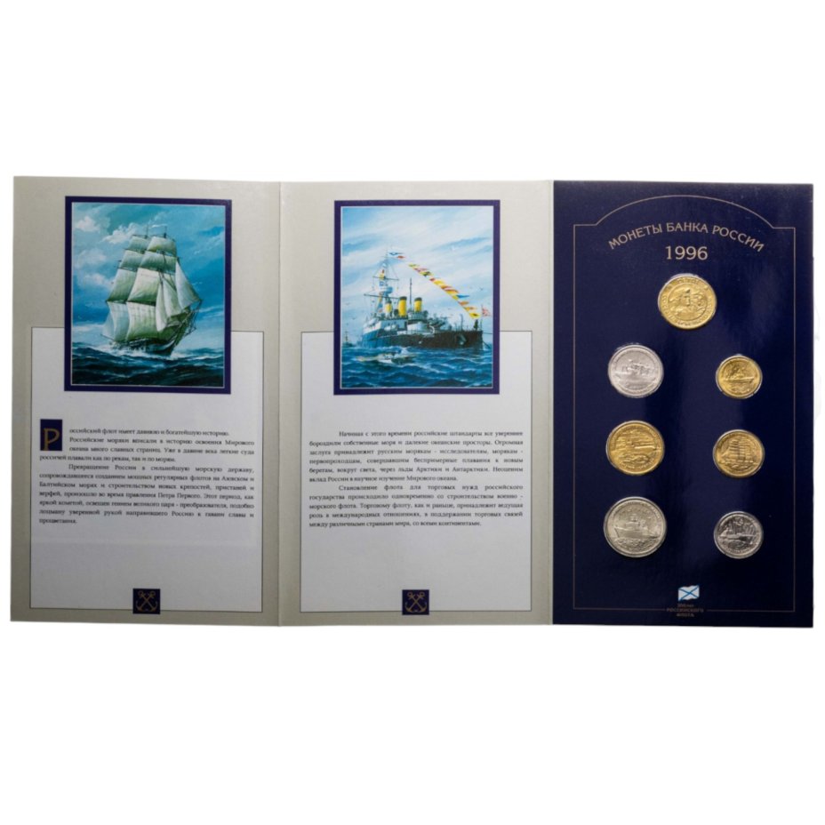 Набор "300 лет Российского флота" 1996 (6 монет + жетон в буклете)