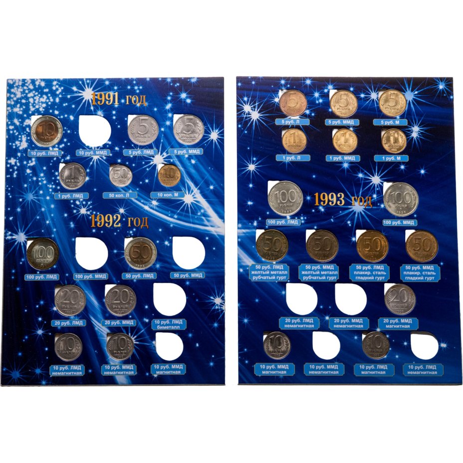 Набор монет Молодой России 1991-1993гг в альбоме, 27 монет