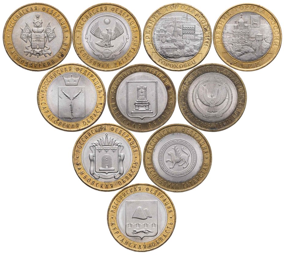 Набор из 10 монет 10 рублей 2008-2018 Субъекты РФ