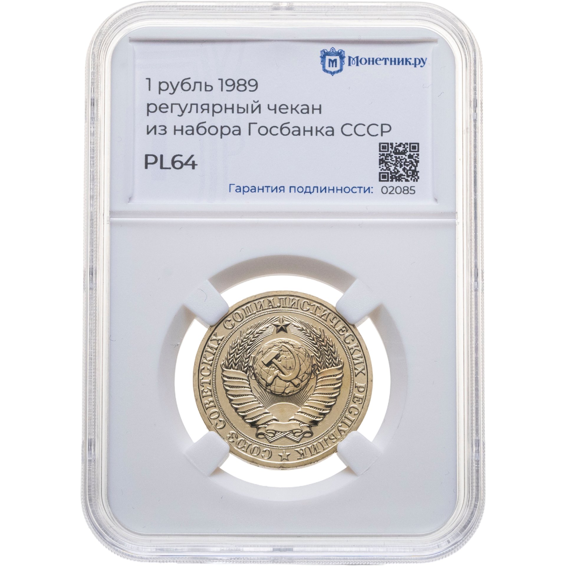 купить 1 рубль 1989, в слабе Монетник.ру PL64
