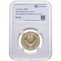 Купить 1 рубль 1989, в слабе Монетник.ру PL64