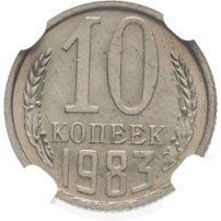 Сертификат подлинности 10 копеек 1983 в слабе DNC MS65