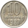 У 10-копеечной монеты 1987 года 3 разновидности: одна тиражная, выпускалась большим тиражом, и две – для годовых выпусков Госбанка, со штемпелями 1961-78 и 1978-84 гг, редкие и очень ценные.