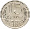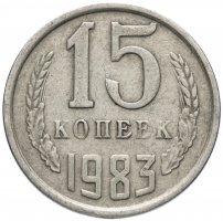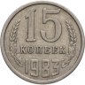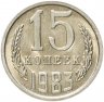 Единственной разновидностью, не считая брака, для 15 копеек 1983 года является монета, входящая в годовой набор Госбанка СССР. Коллекционная монета чеканилась штемпелем № 1, более ранним, чем штемпель № 2 образца 1980 года. На аверсе такой монеты вторые колосья остей не имеют, у звезды лучи тонкие, а герб поднят относительно букв «СССР».
