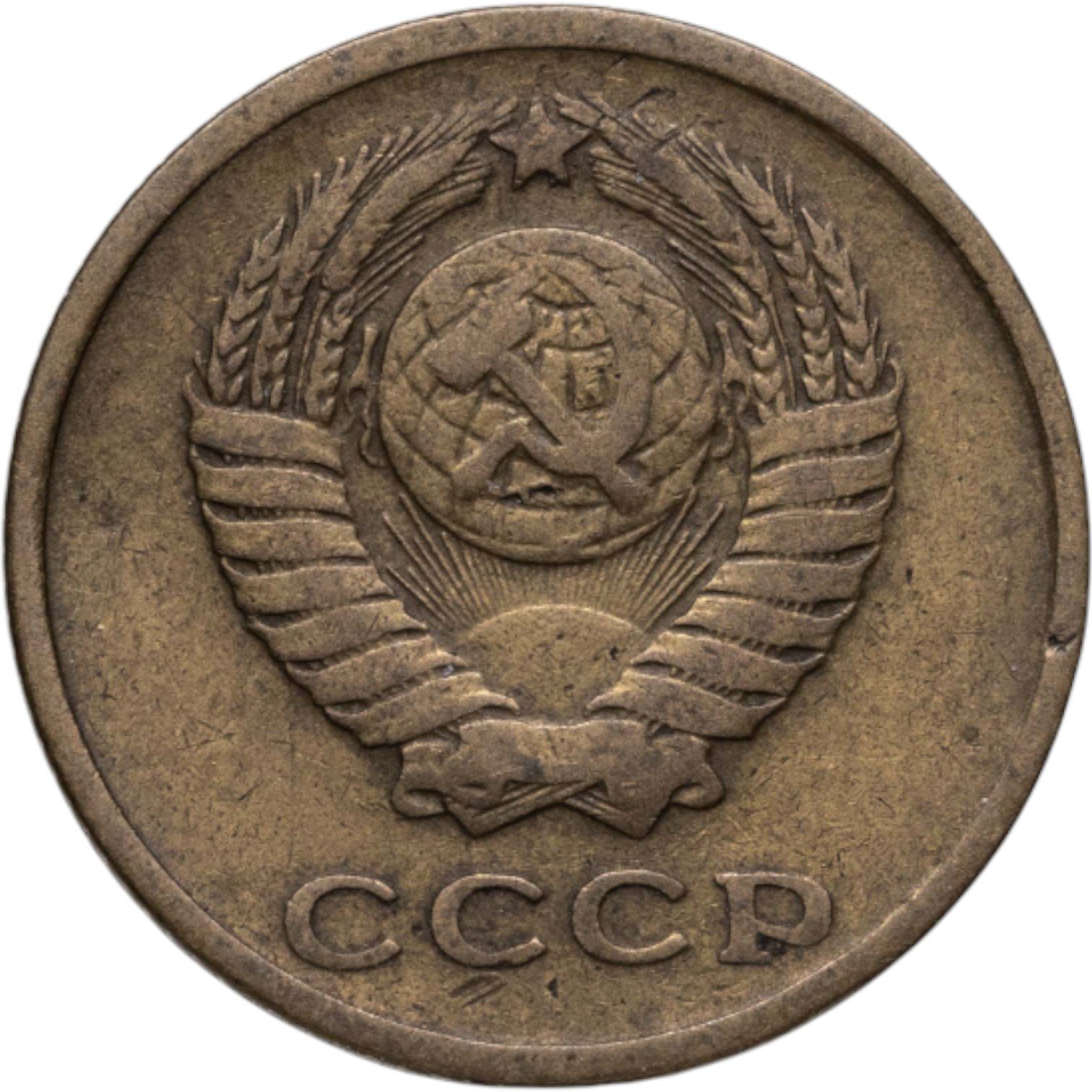 Штемпель А, Ф95, цифра номинала приподнята, венок и колосья отодвинуты от наружного выступающего канта монеты.