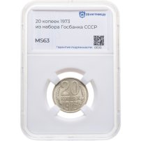 20 копеек 1973 в слабе Монетник.ру MS63