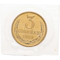 Монета достоинством в 3 копейки будет в обращении ещё несколько лет. Вскоре она уйдет в историю вместе с Советским Союзом и всей его финансовой системой. Так что выпуск 1989 г. – один из последних выпусков этой монеты. Еще немного, и чеканка монет советского периода завершится. Как и уйдёт в небытие само государство рабочих и крестьян.
