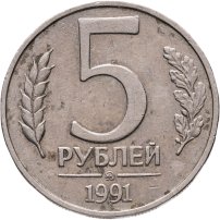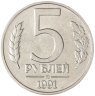 5 рублей 1991 ММД из банковского мешка , штемпельный блеск