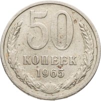 • Гурт: вдавленная надпись «Пятьдесят копеек 1965».