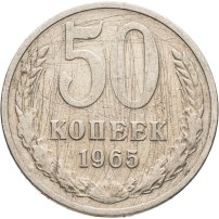 • Гурт: вдавленная надпись «Пятьдесят копеек 1965».