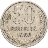 • Гурт: вдавленная надпись «Пятьдесят копеек 1966».