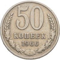• Гурт: вдавленная надпись «Пятьдесят копеек 1966».
