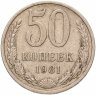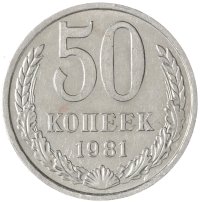 Монета достоинством в 50 копеек чеканилась в СССР с 1921 года. И если изначально выпуск этих монет был невелик, то ко второй половине XX века тиражи приобрели огромные цифры. Стоит отметить, что за 1921-1927 гг. было отчеканено менее 105 млн монет этого номинала, и что полтинники чеканили из серебра 900 пробы.