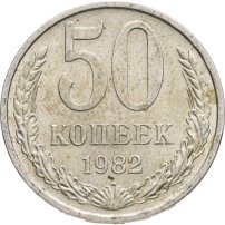 • Гурт: вдавленная надпись «Пятьдесят копеек 1982».