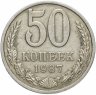 Монета достоинством в 50 копеек чеканилась в СССР с 1921 года. И если изначально выпуск этих монет был невелик, то ко второй половине XX века тиражи приобрели огромные цифры. Стоит отметить, что за 1921-1927 гг. было отчеканено менее 105 млн монет этого номинала, и что полтинники чеканили из серебра 900 пробы.