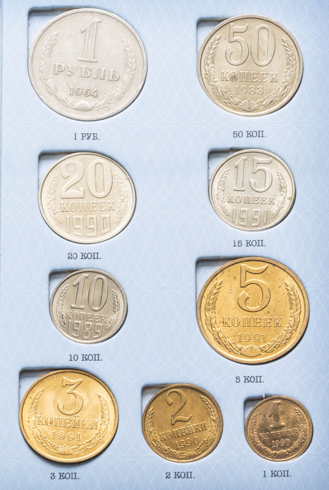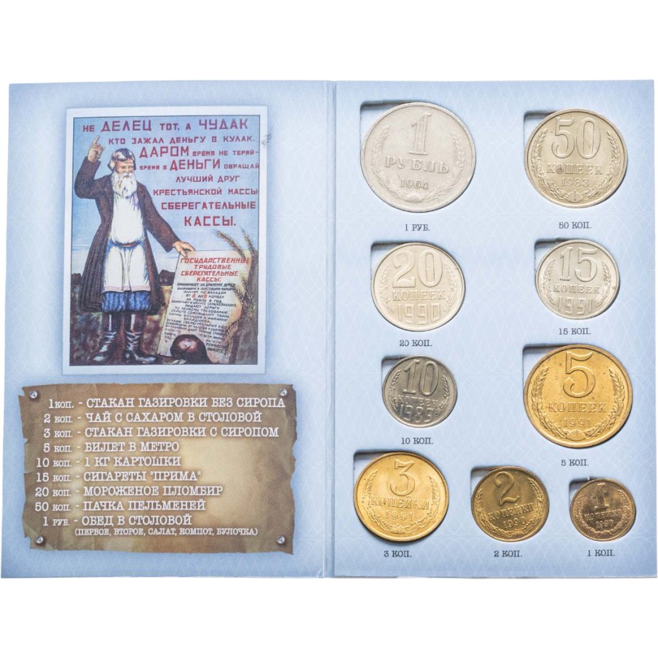 Представленные монеты и банкнота выпущены на территории Советского Союза с 1961 по 1991 год.