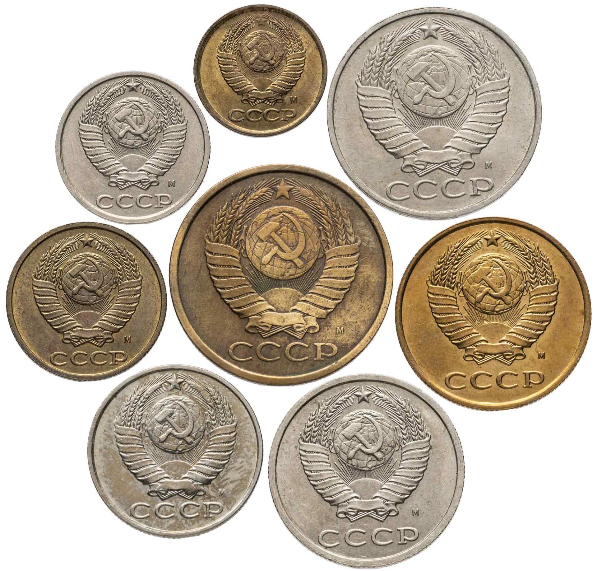купить Набор из 8 монет 1, 2, 3, 5, 10, 15, 20, 50 копеек 1991 М