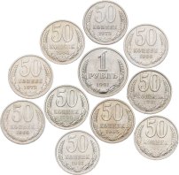 Набор монет 50 копеек СССР 1964 - 1991 (Л , М ) ( 10 монет + бонус )