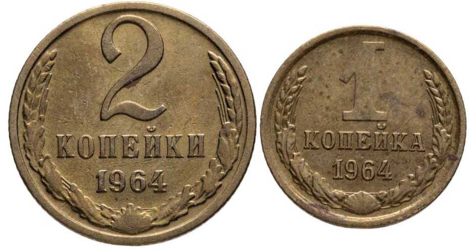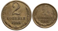 Набор монет СССР 1964 года (2 монеты) 1, 2 копейки