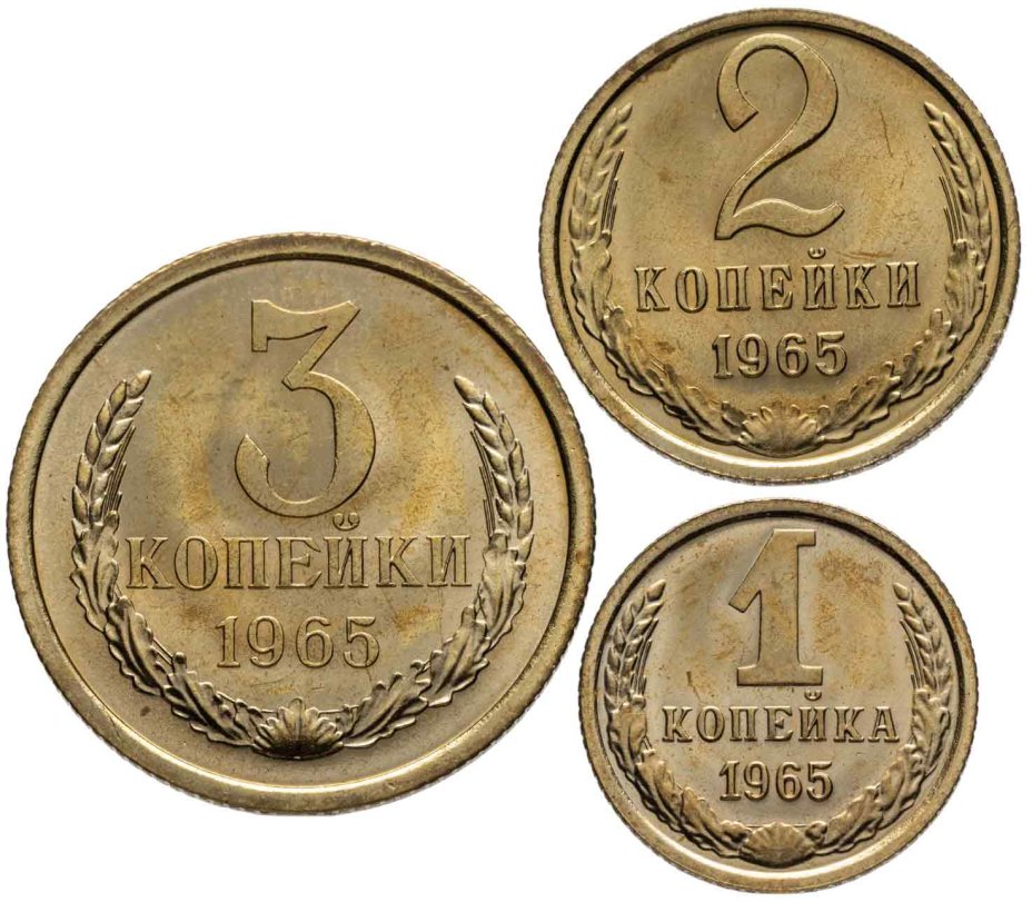 Набор монет СССР 1965 года (3 монеты) 1, 2, 3 копейки