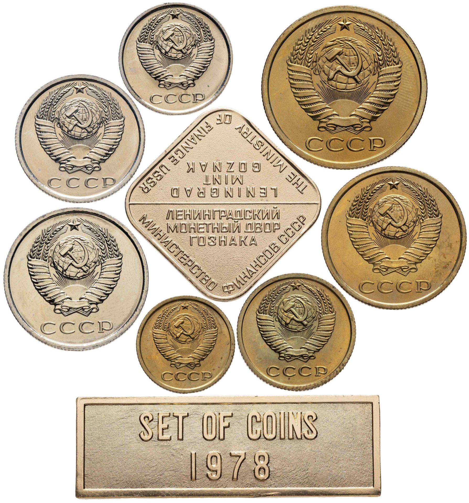 купить Набор монет СССР 1978 года 1, 2, 3, 5, 10, 15 и 20 копеек (7 монет, жетон ЛМД и шильдик)
