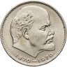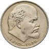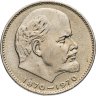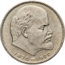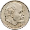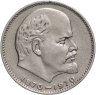 Дизайн реверса монеты создал Виктор Ермаков – художник Гознака, творчество которого отличала ювелирная точность, невероятная тщательность, педантичность, детализация и техническая грамотность. На реверсе 1 рубля герб СССР, занимающий центр верхней половины круглого поля, дополнен двумя строчками номинала, ниже которого изображена звёздочка. От звезды расходится круговая легенда «Сто лет со дня рождения В. И. Ленина». Слева и справа от герба – разделённая на 2 части надпись «СССР». Гурт монеты оформлен чередующимися звёздочками и точками.