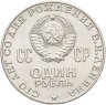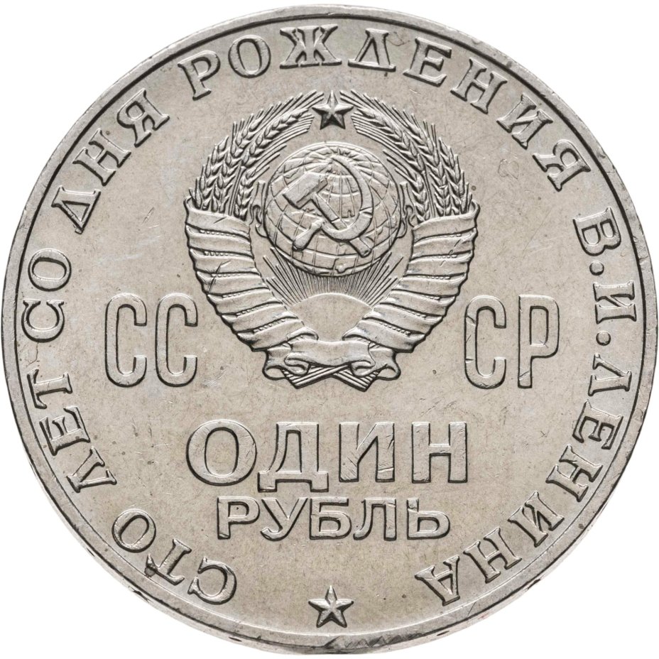 Дизайн реверса монеты создал Виктор Ермаков – художник Гознака, творчество которого отличала ювелирная точность, невероятная тщательность, педантичность, детализация и техническая грамотность. На реверсе 1 рубля герб СССР, занимающий центр верхней половины круглого поля, дополнен двумя строчками номинала, ниже которого изображена звёздочка. От звезды расходится круговая легенда «Сто лет со дня рождения В. И. Ленина». Слева и справа от герба – разделённая на 2 части надпись «СССР». Гурт монеты оформлен чередующимися звёздочками и точками.