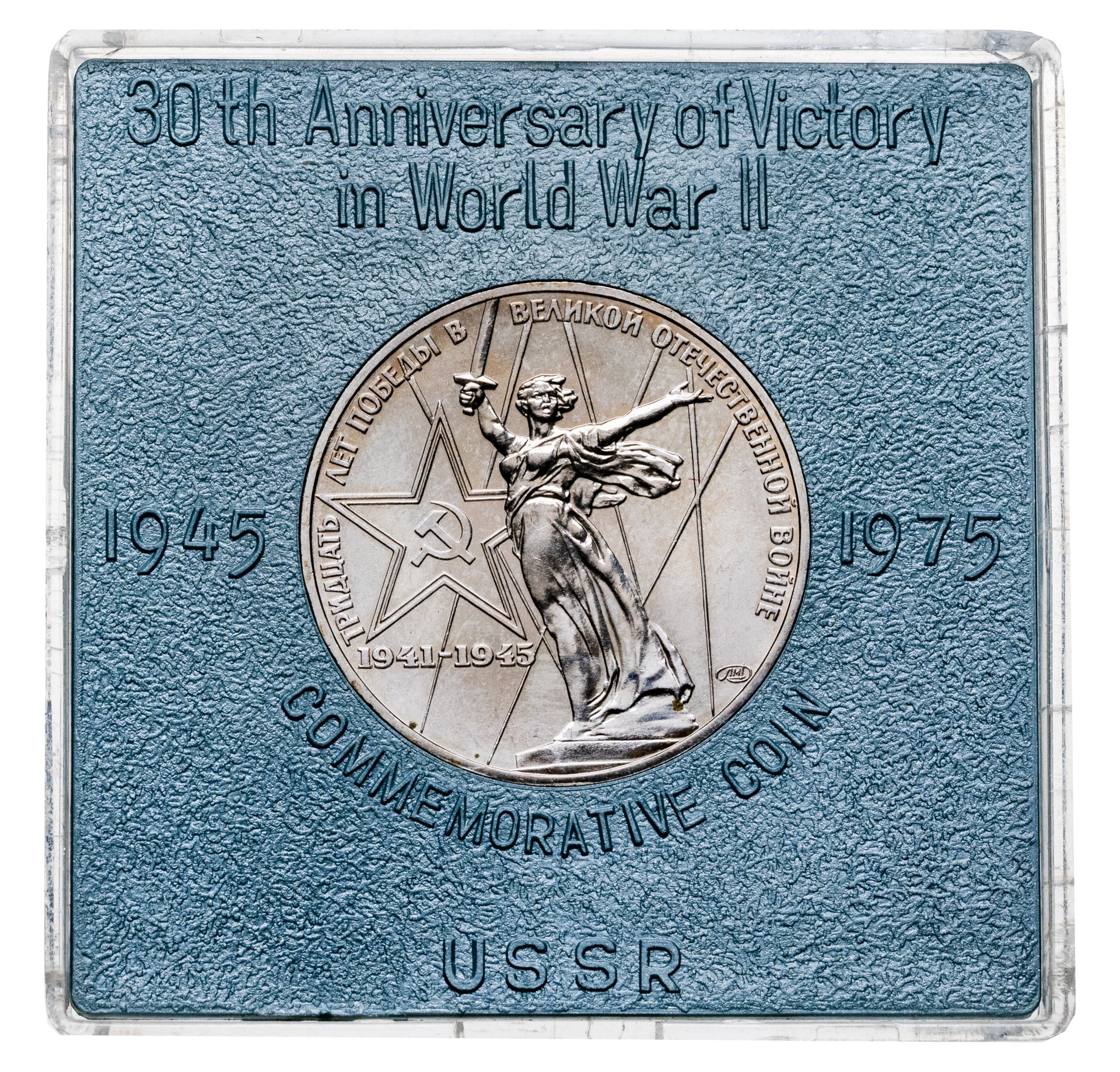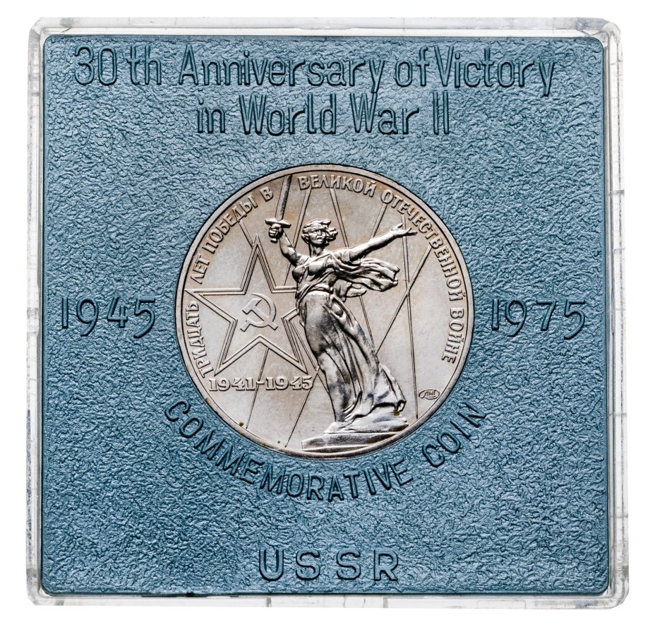 Представленная монета, что совершенно логично, была выпущена десятью годами позже, к 30-летнему юбилею Великой Победы. Стоит отметить, что производство монет, посвященных важным датам, велось вплоть до 1991 года, пока страна не прекратила своё существование.