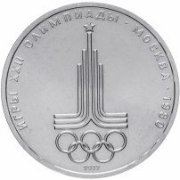 Купить 1 рубль 1977 "Олимпиада-80 эмблема Олимпийских игр"