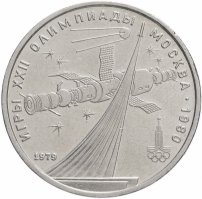 Перед стартом XXII Олимпиады в СССР выпущена юбилейная монета 1 рубль 1979 года, на которой изображён монумент покорителям космоса. Скульптура запечатлела миг, когда ракета стремительно улетает в космическое пространство, оставляя за собой дугообразный хвост. Кроме того, на заднем плане изображены станция «Союз», искусственный спутник и блестящие звёзды, а также олимпийская символика.