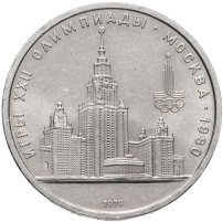 Одной из составных частей подготовки к значимому событию являлась чеканка памятных монет номиналом от 1 до 150 рублей, которые были приурочены к открытию Игр. Монеты чеканились с 1977 по 1980 годы. Всего в олимпийскую серию входят 45 монет. Из медно — никелевого сплава отчеканены 6 видов монет, каждая из них номиналом в 1 рубль.
