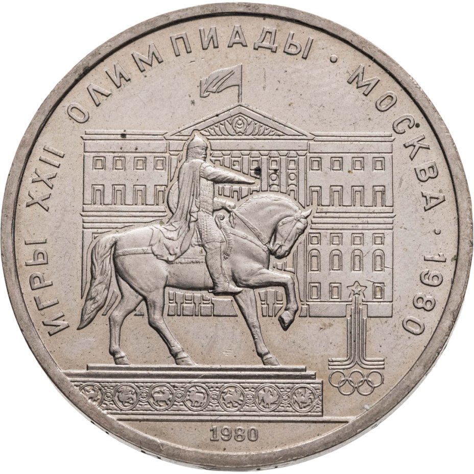 В центре изображение памятника Юрию Долгорукому в Москве на фоне здания Моссовета, под ним дата «1980», обозначающая год чеканки, внизу справа эмблема Олимпийских игр 1980 г. По окружности надпись «ИГРЫ XXII ОЛИМПИАДЫ - МОСКВА . 1980».