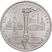 Радостные моменты подготовки омрачил бойкот многих западных стран, отказ от участия как акт несогласия с политикой, проводимой Советским Союзом, в частности вводом войск в Афганистан в 1979 году.В соответствии с этим большая часть стран-участников относилась к так называемому социалистическому лагерю, дружественному СССР. По итогам Олимпиады первое место в медальном зачёте занял Советский Союз, это была исключительная победа, советские спортсмены далеко опередили конкурентов. Одной из составных частей подготовки к значимому событию являлась чеканка памятных монет номиналом от 1 до 150 рублей, которые были приурочены к открытию Игр. Монеты чеканились с 1977 по 1980 годы. Всего в олимпийскую серию входят 45 монет. Из медно — никелевого сплава отчеканены 6 видов монет, каждая из них номиналом в 1 рубль. В 1980 году наряду с интересующей нас монетой с изображением Олимпийского факела, вышла в оборот также монета с изображением памятника Юрию Долгорукому в Москве.